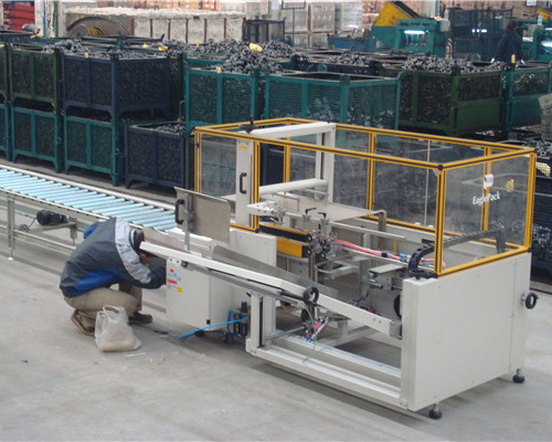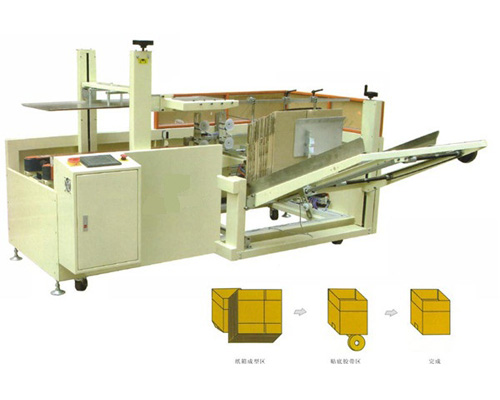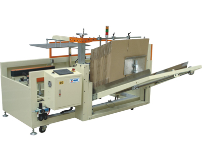 开箱机也叫纸箱成型机,箱子底部按一定程序折合,并用胶带密封后输送给装箱机的专用设备。自动纸箱成型机、自动开箱机是大批量纸箱自动开箱、自动折合下盖、自动密封下底胶带的流水线设备,机器全部采用PLC+显示屏控制,大大方便操作,是自动化规模生产必不可少的设备。