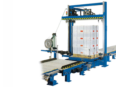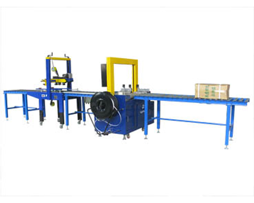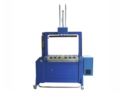打包机主要由送带、退带、接头连接切断装置、传动系统、轨道机架及控制装置所组成。